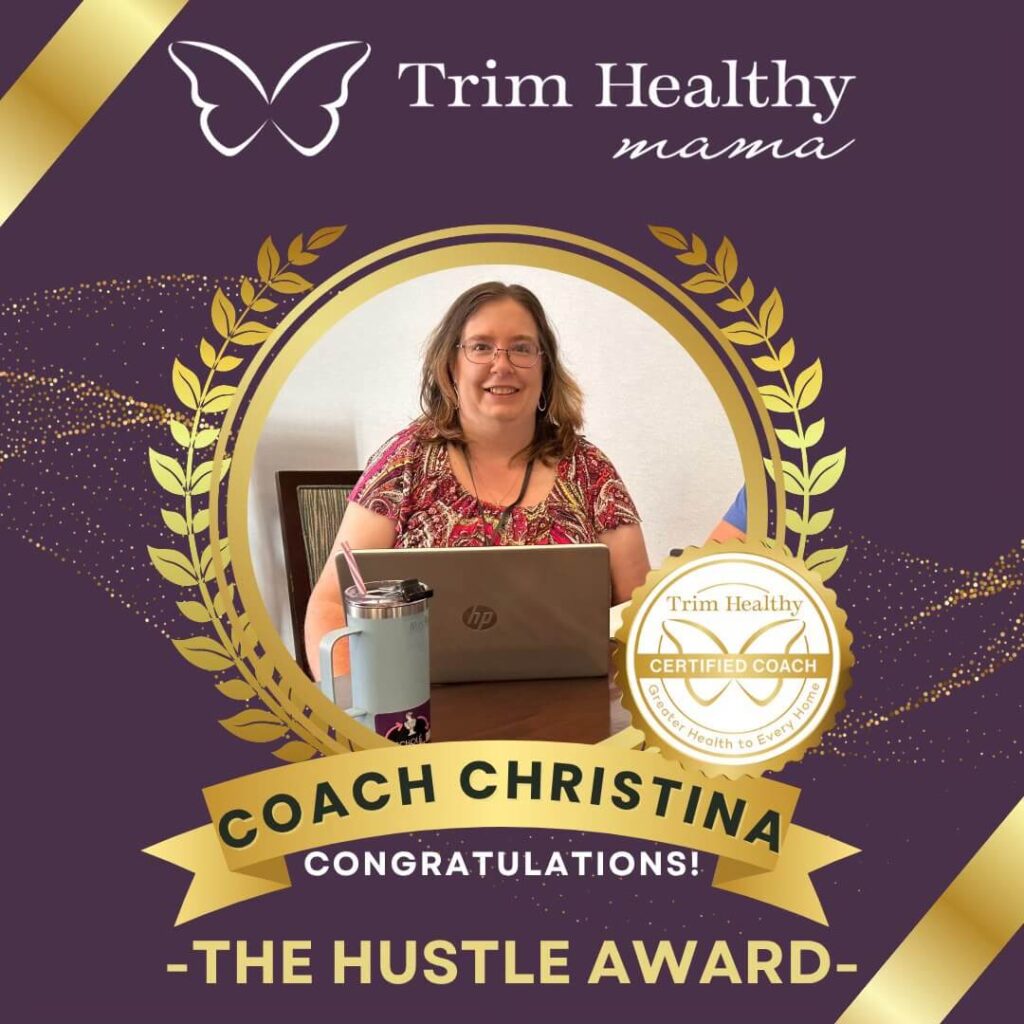 The Hustle Award honors not just effort, but heart–something I’ve poured into this journey since day one. When I found Trim Healthy Mama in August 2021, I was at a low point physically and emotionally. I had tried so many things that didn’t work and was feeling defeated. But God used two of my closest friends, Crystal and Lindsey, to point me toward this plan–and I’m forever grateful.